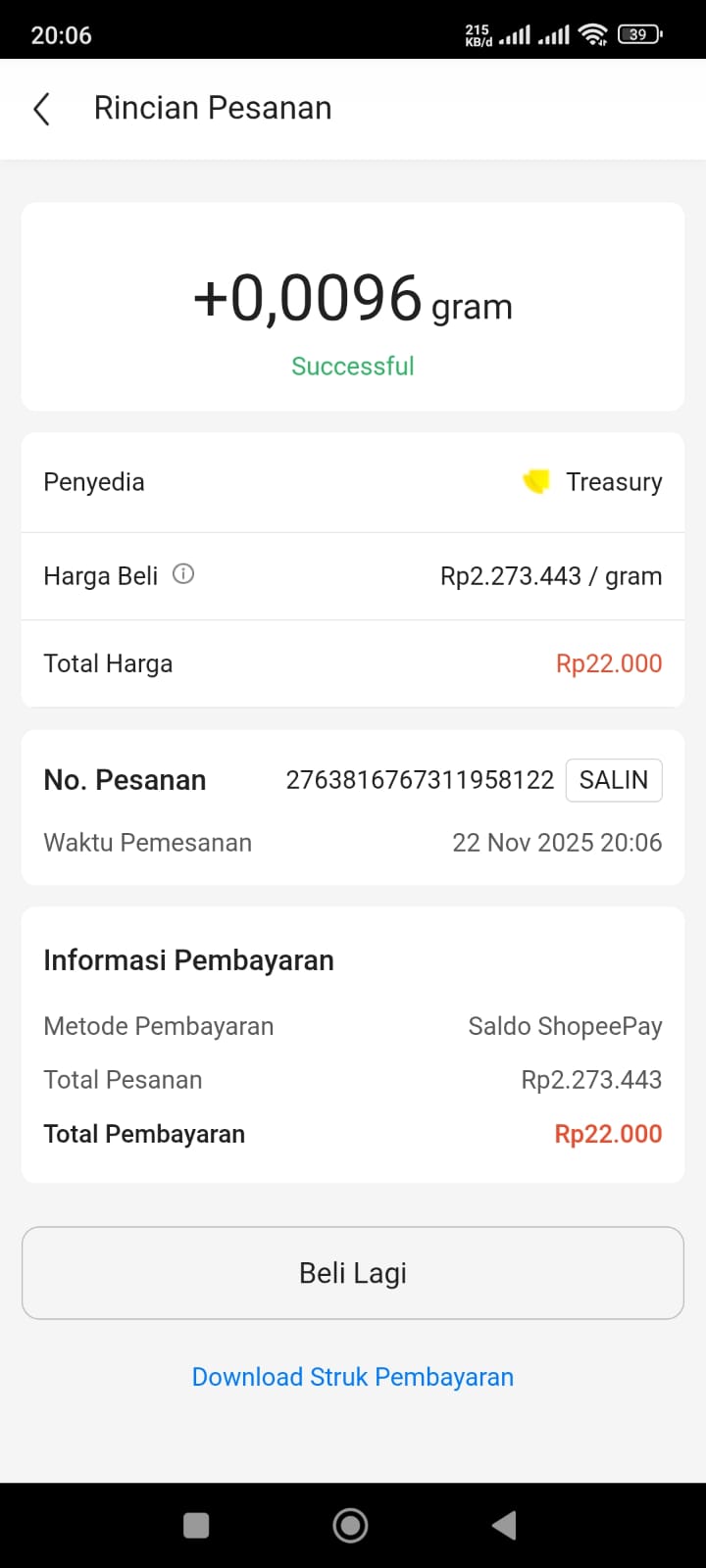 | 28 Nov 2025, 20:57 | Saya | Setor | Rp 20.000 | Tezza |