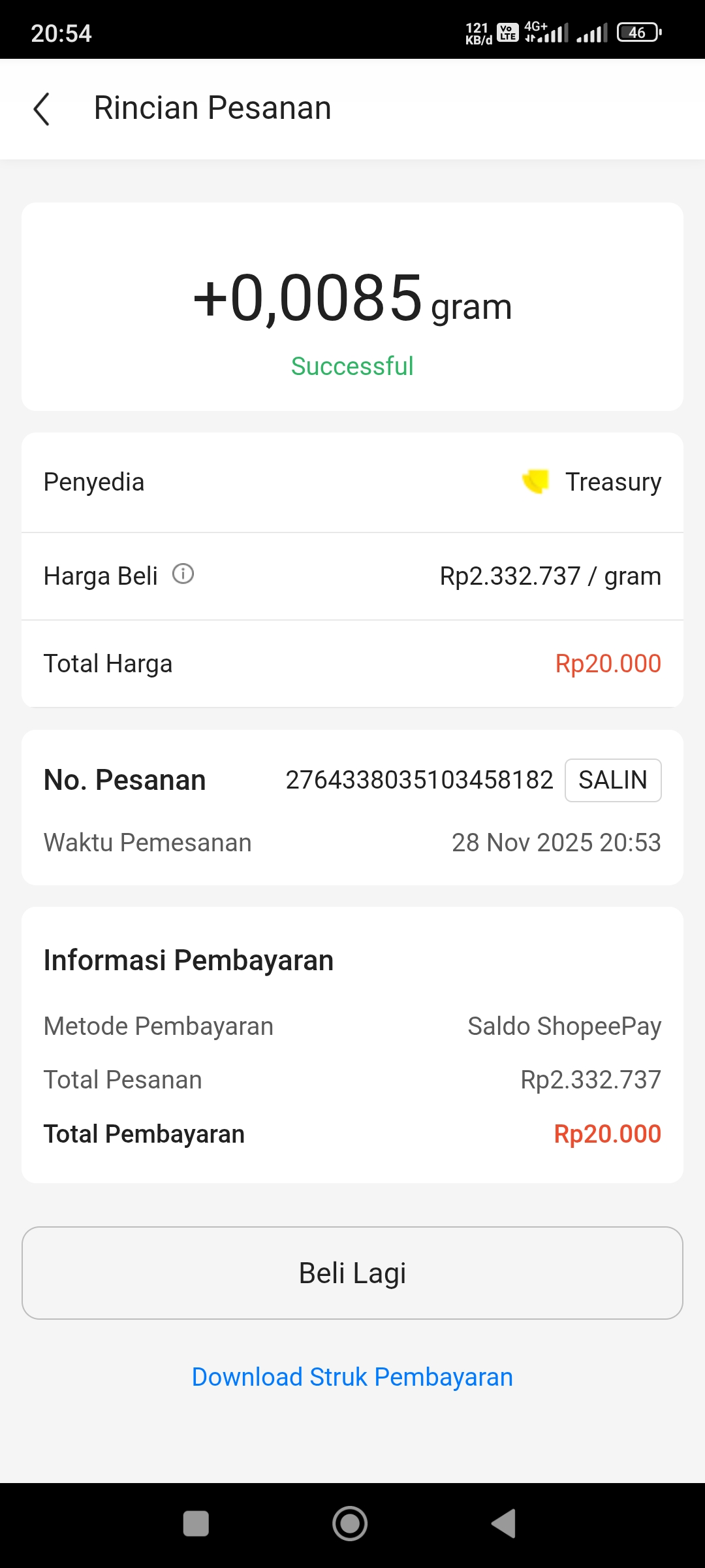| 28 Nov 2025, 20:57 | Saya | Setor | Rp 20.000 | Tezza |